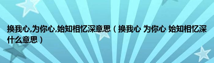 大家好,小育来为大家讲解下。换我心,为你心,始知相忆深意思,换我心 为你心 始知相忆深什么意思很多人还不知道,现在让我们一起来看看吧!