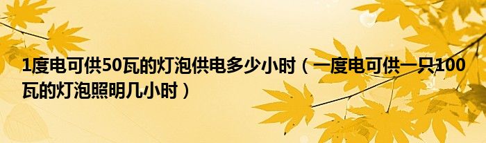 大家好,小育来为大家讲解下。1度电可供50瓦的灯泡供电多少小时,一度电可供一只100瓦的灯泡照明几小时很多人还不知道,现在让我们一起来看看吧!