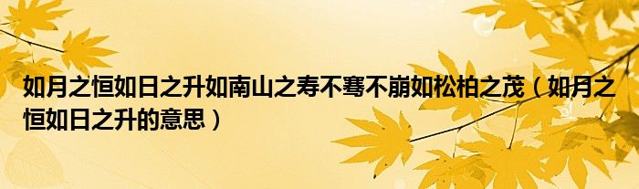 大家好,小育来为大家讲解下。如月之恒如日之升如南山之寿不骞不崩如松柏之茂,如月之恒如日之升的意思很多人还不知道,现在让我们一起来看看吧!