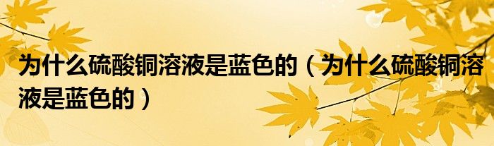 大家好,小育来为大家讲解下。为什么硫酸铜溶液是蓝色的,为什么硫酸铜溶液是蓝色的很多人还不知道,现在让我们一起来看看吧!
