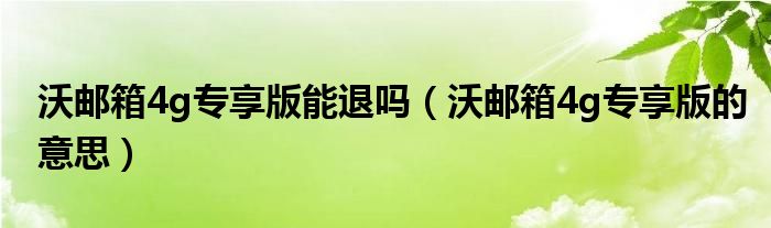 大家好,小育来为大家讲解下。沃邮箱4g专享版能退吗,沃邮箱4g专享版的意思很多人还不知道,现在让我们一起来看看吧!