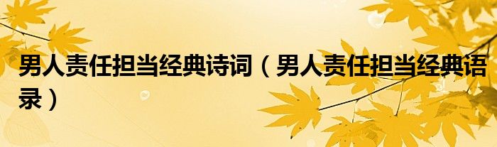 大家好,小育来为大家讲解下。男人责任担当经典诗词,男人责任担当经典语录很多人还不知道,现在让我们一起来看看吧!