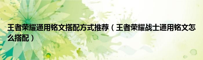 大家好,小育来为大家讲解下。王者荣耀通用铭文搭配方式推荐,王者荣耀战士通用铭文怎么搭配很多人还不知道,现在让我们一起来看看吧!
