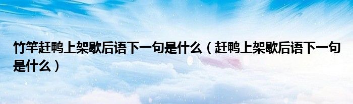 大家好,小育来为大家讲解下。竹竿赶鸭上架歇后语下一句是什么,赶鸭上架歇后语下一句是什么很多人还不知道,现在让我们一起来看看吧!