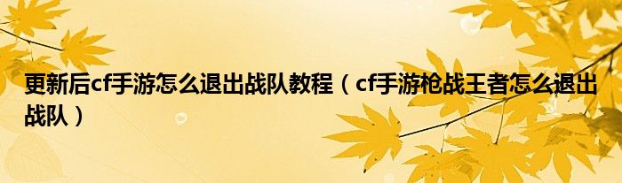 大家好,小育来为大家讲解下。更新后cf手游怎么退出战队教程,cf手游枪战王者怎么退出战队很多人还不知道,现在让我们一起来看看吧!