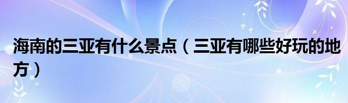大家好,伊人来为大家解答以上问题。海南的三亚有什么景点,三亚有哪些好玩的地方很多人还不知道,现在让我们一起来看看吧!