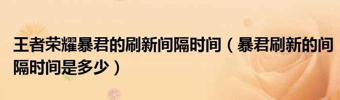 大家好,小育来为大家讲解下。王者荣耀暴君的刷新间隔时间,暴君刷新的间隔时间是多少很多人还不知道,现在让我们一起来看看吧!