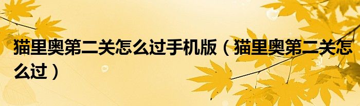大家好,小育来为大家讲解下。猫里奥第二关怎么过手机版,猫里奥第二关怎么过很多人还不知道,现在让我们一起来看看吧!