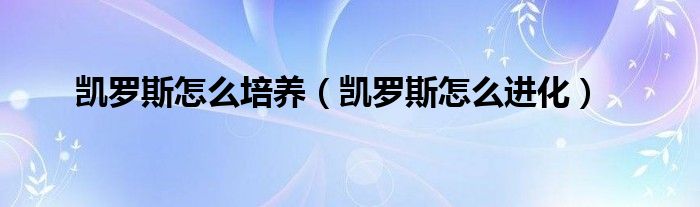 大家好,小育来为大家讲解下。凯罗斯怎么培养,凯罗斯怎么进化很多人还不知道,现在让我们一起来看看吧!