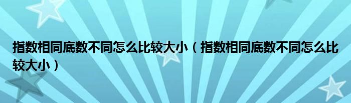 大家好,小育来为大家讲解下。指数相同底数不同怎么比较大小,指数相同底数不同怎么比较大小很多人还不知道,现在让我们一起来看看吧!