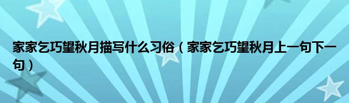 大家好,小育来为大家讲解下。家家乞巧望秋月描写什么习俗,家家乞巧望秋月上一句下一句很多人还不知道,现在让我们一起来看看吧!