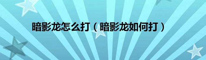 大家好,伊人来为大家解答以上问题。暗影龙怎么打,暗影龙如何打很多人还不知道,现在让我们一起来看看吧!