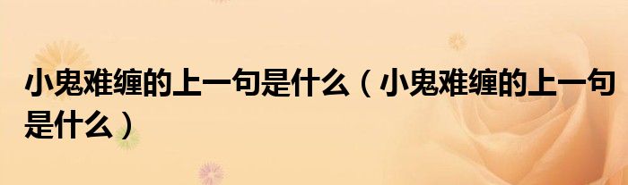 大家好,小育来为大家讲解下。小鬼难缠的上一句是什么,小鬼难缠的上一句是什么很多人还不知道,现在让我们一起来看看吧!
