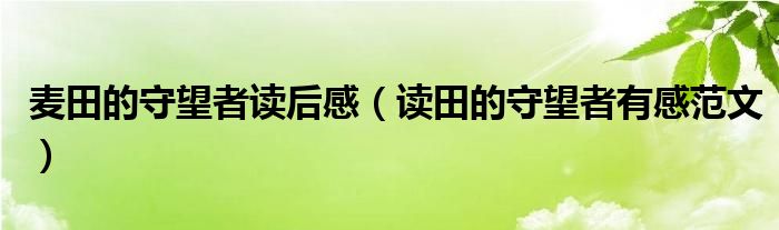 大家好,伊人来为大家解答以上问题。麦田的守望者读后感,读田的守望者有感范文很多人还不知道,现在让我们一起来看看吧!