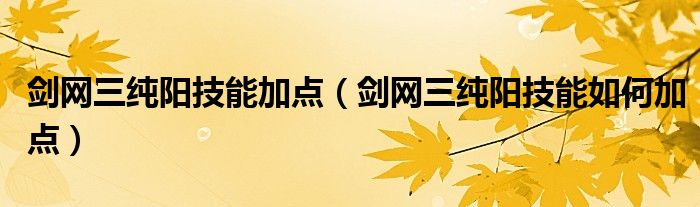 大家好,伊人来为大家解答以上问题。剑网三纯阳技能加点,剑网三纯阳技能如何加点很多人还不知道,现在让我们一起来看看吧!