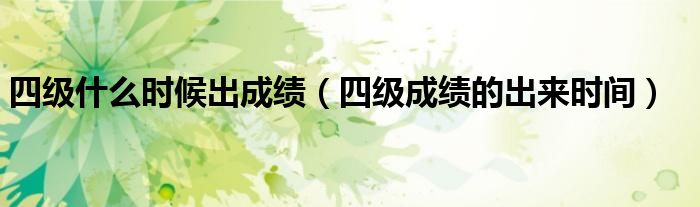 大家好,伊人来为大家解答以上问题。四级什么时候出成绩,四级成绩的出来时间很多人还不知道,现在让我们一起来看看吧!