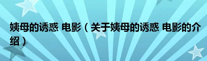 大家好,小新来为大家解答以上的问题。姨母的诱惑 电影,关于姨母的诱惑 电影的介绍很多人还不知道,现在让我们一起来看看吧!