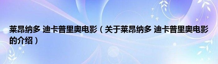 大家好,小新来为大家解答以上的问题。莱昂纳多 迪卡普里奥电影,关于莱昂纳多 迪卡普里奥电影的介绍很多人还不知道,现在让我们一起来看看吧!