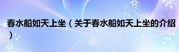 大家好,小新来为大家解答以上的问题。春水船如天上坐,关于春水船如天上坐的介绍很多人还不知道,现在让我们一起来看看吧!1、《春水船如天上坐》是瓦拉拉创作的网络小说。2、发表于晋江文学网。本文到此结束,希望对大家有所帮助。