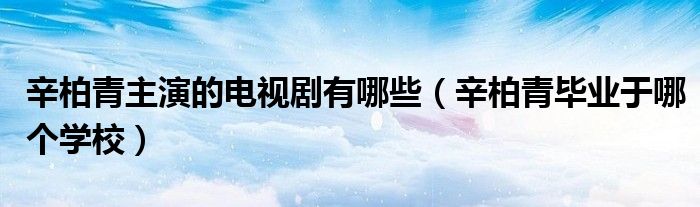 大家好,伊人来为大家解答以上问题。辛柏青主演的电视剧有哪些,辛柏青毕业于哪个学校很多人还不知道,现在让我们一起来看看吧!