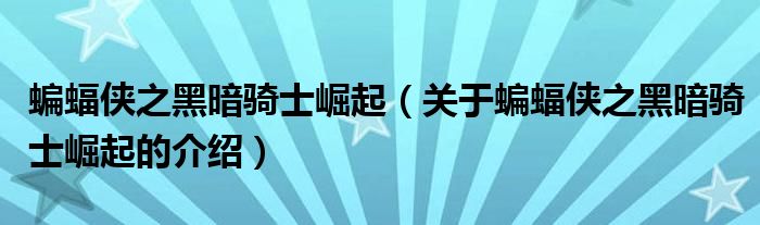 大家好,小新来为大家解答以上的问题。蝙蝠侠之黑暗骑士崛起,关于蝙蝠侠之黑暗骑士崛起的介绍很多人还不知道,现在让我们一起来看看吧!