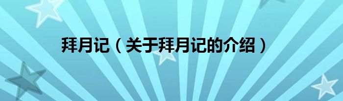 大家好,小新来为大家解答以上的问题。拜月记,关于拜月记的介绍很多人还不知道,现在让我们一起来看看吧!