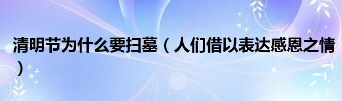 大家好,伊人来为大家解答以上问题。清明节为什么要扫墓,人们借以表达感恩之情很多人还不知道,现在让我们一起来看看吧!1、1.缅怀祖先2、2.记住这个传统3、3.尊重历史4、延伸的感觉本文到此结束,希望对大家有所帮助。