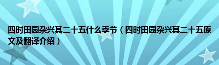 大家好,伊人来为大家解答以上问题。四时田园杂兴其二十五什么季节,四时田园杂兴其二十五原文及翻译介绍很多人还不知道,现在让我们一起来看看吧!