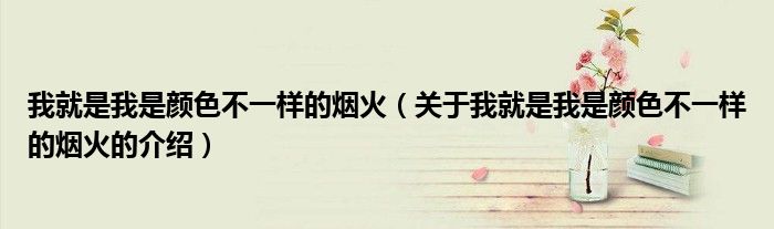 大家好,小新来为大家解答以上的问题。我就是我是颜色不一样的烟火,关于我就是我是颜色不一样的烟火的介绍很多人还不知道,现在让我们一起来看看吧!