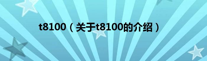 大家好,小新来为大家解答以上的问题。t8100,关于t8100的介绍很多人还不知道,现在让我们一起来看看吧!