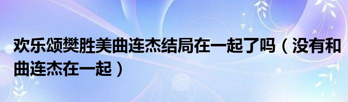 大家好,伊人来为大家解答以上问题。欢乐颂樊胜美曲连杰结局在一起了吗,没有和曲连杰在一起很多人还不知道,现在让我们一起来看看吧!