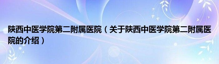 大家好,小新来为大家解答以上的问题。陕西中医学院第二附属医院,关于陕西中医学院第二附属医院的介绍很多人还不知道,现在让我们一起来看看吧!
