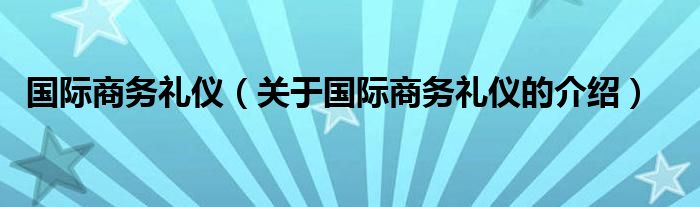 大家好,小新来为大家解答以上的问题。国际商务礼仪,关于国际商务礼仪的介绍很多人还不知道,现在让我们一起来看看吧!
