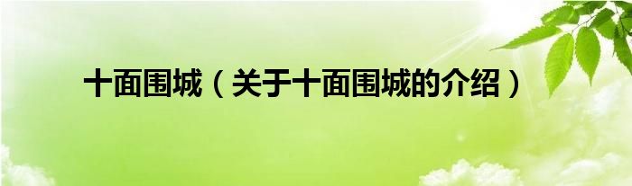 大家好,小新来为大家解答以上的问题。十面围城,关于十面围城的介绍很多人还不知道,现在让我们一起来看看吧!