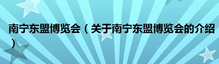 大家好,小新来为大家解答以上的问题。南宁东盟博览会,关于南宁东盟博览会的介绍很多人还不知道,现在让我们一起来看看吧!