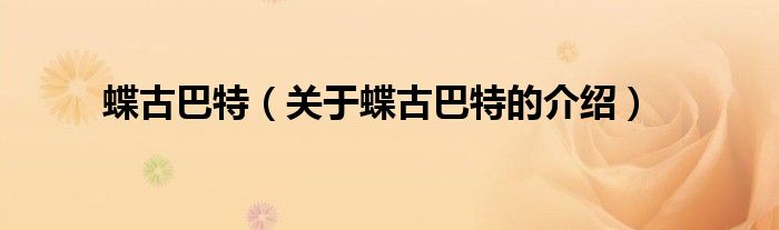 大家好,小新来为大家解答以上的问题。蝶古巴特,关于蝶古巴特的介绍很多人还不知道,现在让我们一起来看看吧!