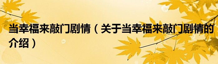 大家好,小新来为大家解答以上的问题。当幸福来敲门剧情,关于当幸福来敲门剧情的介绍很多人还不知道,现在让我们一起来看看吧!