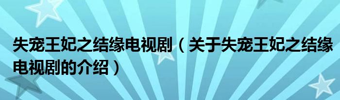 大家好,小新来为大家解答以上的问题。失宠王妃之结缘电视剧,关于失宠王妃之结缘电视剧的介绍很多人还不知道,现在让我们一起来看看吧!