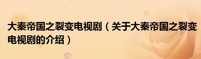 大家好,小新来为大家解答以上的问题。大秦帝国之裂变电视剧,关于大秦帝国之裂变电视剧的介绍很多人还不知道,现在让我们一起来看看吧!