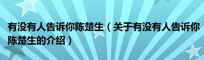 大家好,小新来为大家解答以上的问题。有没有人告诉你陈楚生,关于有没有人告诉你陈楚生的介绍很多人还不知道,现在让我们一起来看看吧!