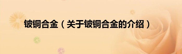 大家好,小新来为大家解答以上的问题。铍铜合金,关于铍铜合金的介绍很多人还不知道,现在让我们一起来看看吧!