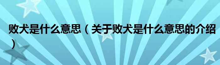 大家好,小新来为大家解答以上的问题。败犬是什么意思,关于败犬是什么意思的介绍很多人还不知道,现在让我们一起来看看吧!