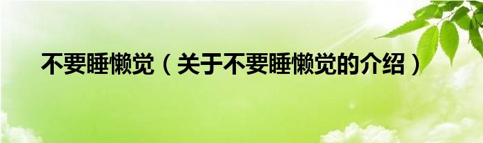 大家好,小新来为大家解答以上的问题。不要睡懒觉,关于不要睡懒觉的介绍很多人还不知道,现在让我们一起来看看吧!