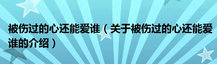 大家好,小新来为大家解答以上的问题。被伤过的心还能爱谁,关于被伤过的心还能爱谁的介绍很多人还不知道,现在让我们一起来看看吧!