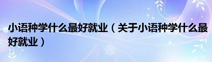 大家好,伊人来为大家解答以上问题。小语种学什么最好就业,关于小语种学什么最好就业很多人还不知道,现在让我们一起来看看吧!