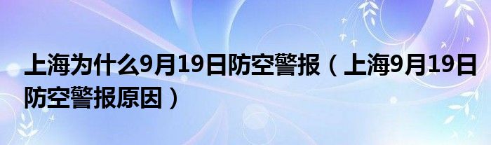大家好,伊人来为大家解答以上问题。上海为什么9月19日防空警报,上海9月19日防空警报原因很多人还不知道,现在让我们一起来看看吧!
