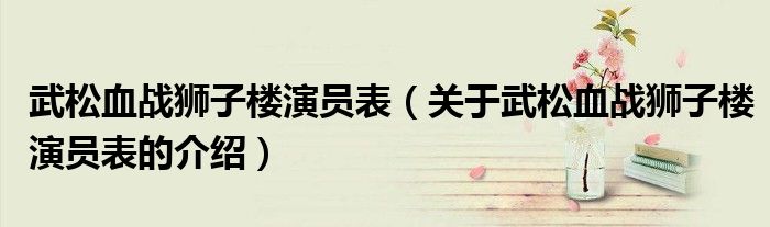 大家好,小新来为大家解答以上的问题。武松血战狮子楼演员表,关于武松血战狮子楼演员表的介绍很多人还不知道,现在让我们一起来看看吧!