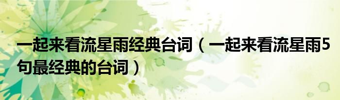 大家好,伊人来为大家解答以上问题。一起来看流星雨经典台词,一起来看流星雨5句最经典的台词很多人还不知道,现在让我们一起来看看吧!