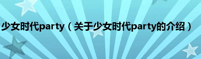 大家好,小新来为大家解答以上的问题。少女时代party,关于少女时代party的介绍很多人还不知道,现在让我们一起来看看吧!