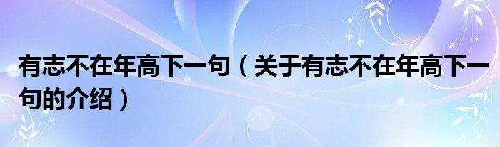 大家好,小新来为大家解答以上的问题。有志不在年高下一句,关于有志不在年高下一句的介绍很多人还不知道,现在让我们一起来看看吧!